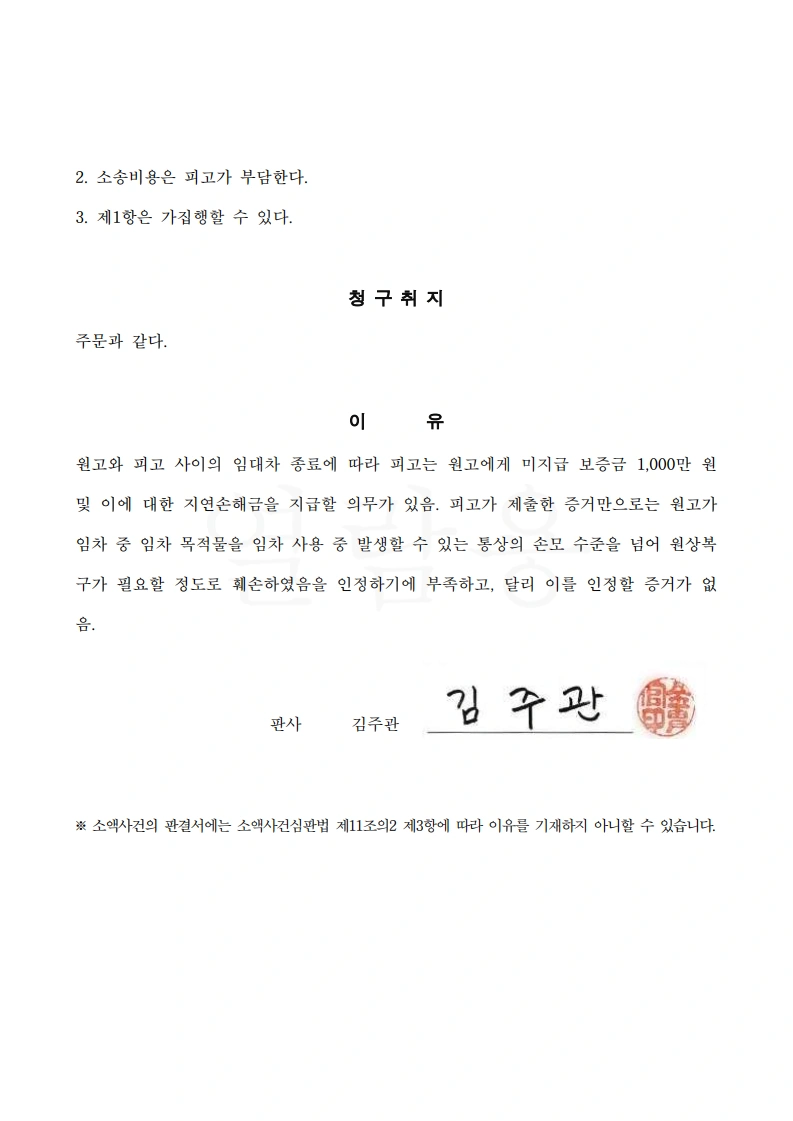 법원은 원고의 청구를 전부 기각하고, 소송비용 역시 원고 부담으로 판결하였습니다.